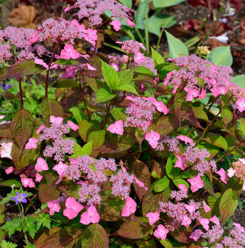 An der Teller Hortensie Daredevil ist im Sommer alles rot. Das Blatt, die Blüte, selbst der Zweig zeigt sich dunkel. Die Teller Hortensie ist eine Sommergrüne Pflanze. Der Gartenboden sollte leicht humos und nicht zu trocken sein. Die Teller Hortensie ist eine winterharte Gartenpflanze.